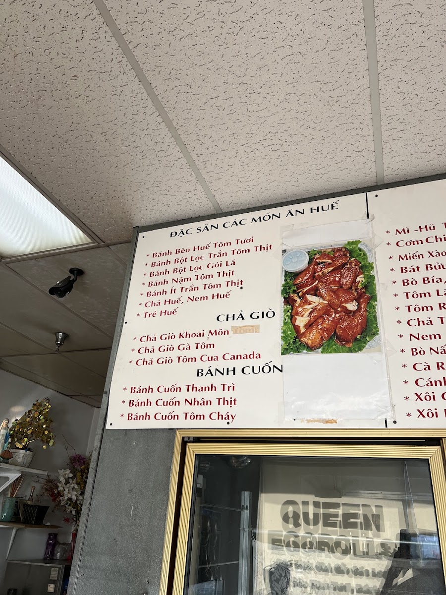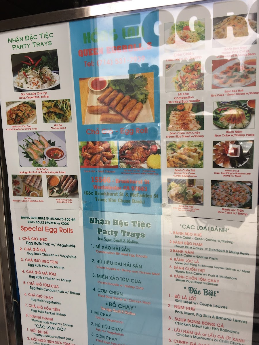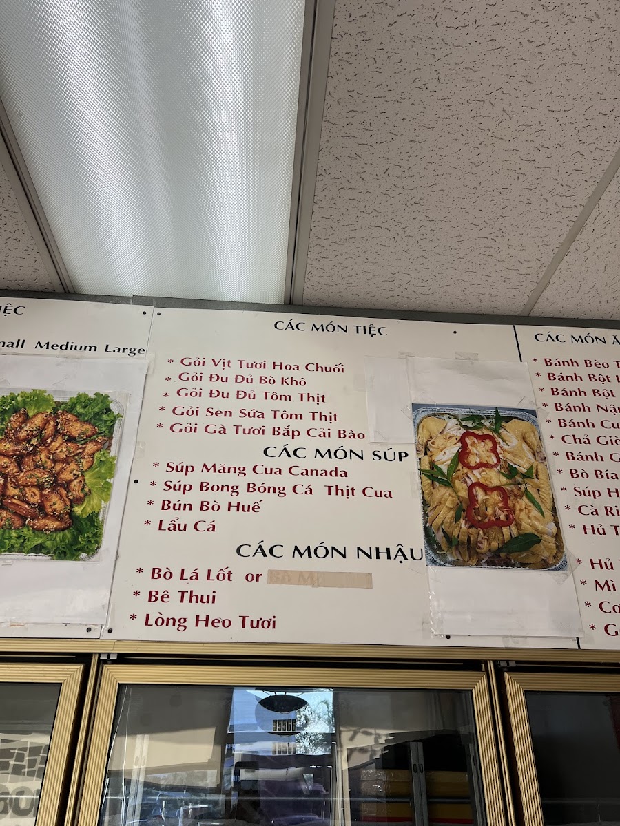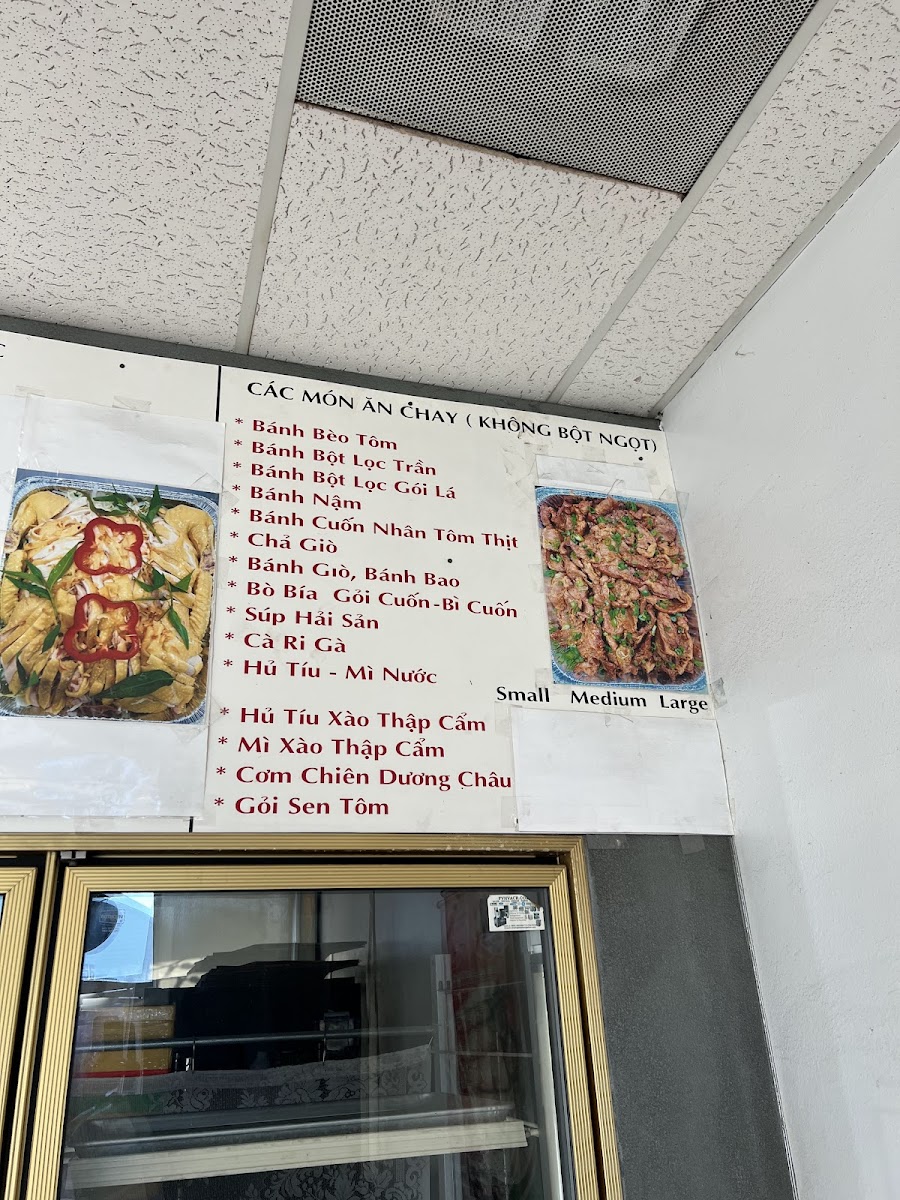 The menu offers a selection of Vietnamese and Chinese cuisine, focusing primarily on takeout options. It features a variety of traditional dishes such as egg rolls, seafood pan-fried egg noodles, and other popular items suited for casual meals or gatherings. Customers can typically find both freshly prepared items and frozen products intended for home cooking.